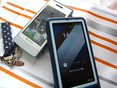 INFOBAR A01です。チョコミント!可愛い!スマホは色々出来るけど電池消費激しいです